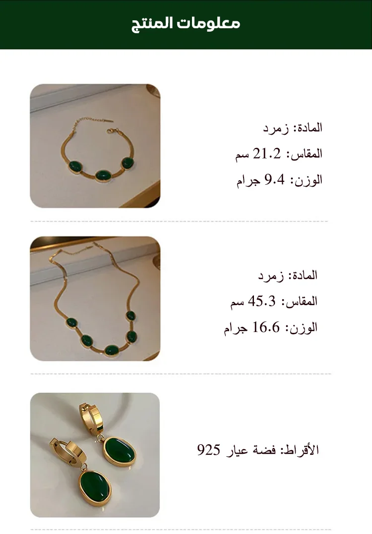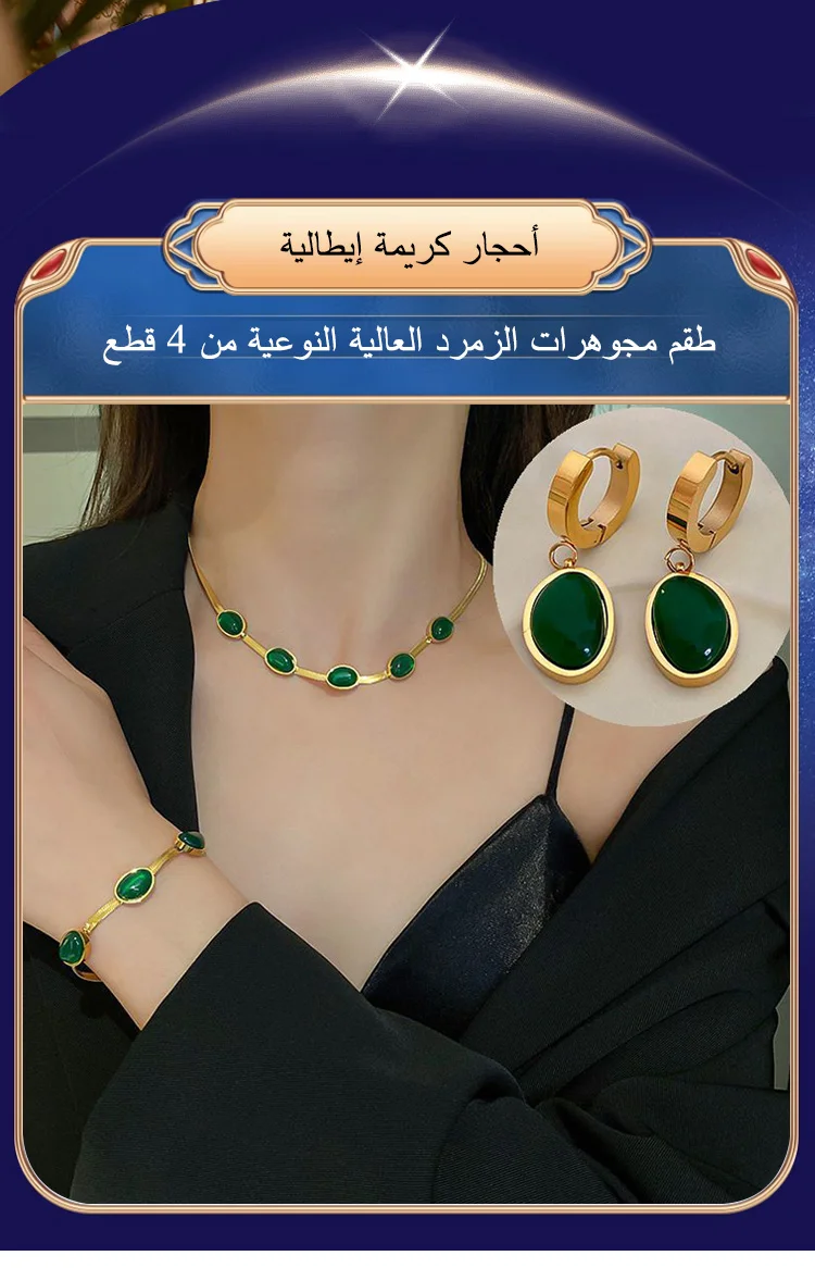 مجموعة من 4 قطع من مجوهرات الزمرد عالية الجودة، مرصعة بالذهب الطبيعي من سريلانكا، الرمز الحقيقي للفخامة والتميز. هذه المجوهرات حقاً تستحق الاقتناء طويل الأمد، ولها فرصة للقيمة الصعودية، وكل قطعة مجوهرات مرفقة بشهادة! للاحتفال بالذكرى ال 30 لتأسيس العلامة التجارية، اشتري قلادة الآن واحصل على سوار وأقراط مجاناً. ارتداء هذه المجوهرات سوف يجلب لك الجمال والحظ السعيد! الأسهم بخصم 50%، فقط 5 مجموعة متوفرة.